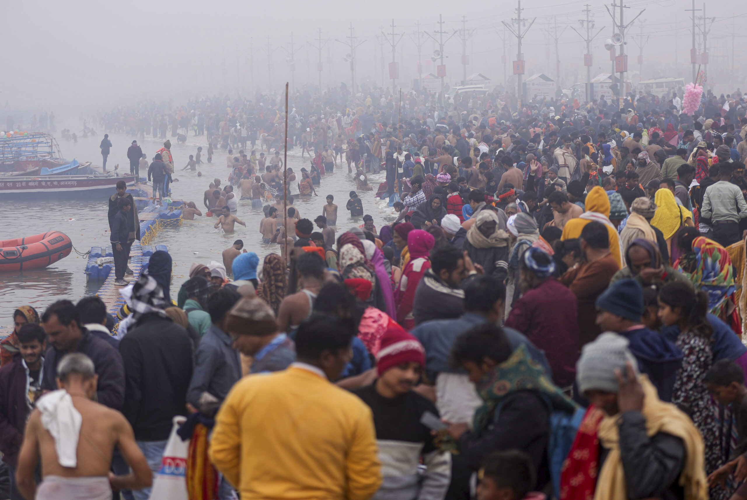 प्रयागराज/मिर्जापुर/वाराणसी/अयोध्या (उप्र), एक जनवरी। उत्तर प्रदेश में बृहस्पतिवार को कड़ाके की ठंड और घने कोहरे के बावजूद हजारों श्रद्धालुओं ने नववर्ष की शुरुआत त्रिवेणी संगम में डुबकी लगाकर की और राज्य के प्रमुख तीर्थ स्थलों पर भारी आस्था का माहौल देखा गया। प्रयागराज के घाट सुबह से ही पूजा-अर्चना और स्नान के लिए श्रद्धालुओं से भरे रहे, जबकि प्रशासन ने सुरक्षा और भीड़ नियंत्रण के व्यापक इंतजाम किए।