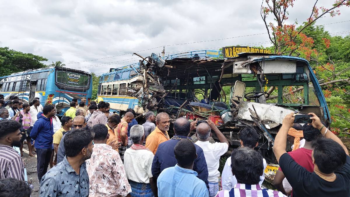 तमिलनाडु के तेनकासी जिले में सोमवार सुबह एक भीषण सड़क दुर्घटना हो गई, जिसमें बस और एक मिनी-ट्रक की जोरदार टक्कर में छह लोगों की मौत हो गई। हादसा तेनकासी के शंकरनकोविल मार्ग पर उस समय हुआ, जब बस तेज रफ्तार में आ रहे मिनी-ट्रक से भिड़ गई। टक्कर इतनी जबरदस्त थी कि बस का आगे का हिस्सा पूरी तरह क्षतिग्रस्त हो गया और कई यात्री सीटों पर ही फंस गए।