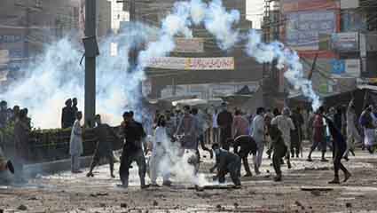 इस्लामाबाद, 13 अक्टूबर पाकिस्तान के पंजाब प्रांत में सोमवार को कट्टरपंथी इस्लामी संगठन तहरीक-ए-लब्बैक पाकिस्तान (TLP) के समर्थकों और सुरक्षाबलों के बीच हुई हिंसक झड़प में कम से कम पांच लोगों की मौत हो गई, जिनमें एक पुलिसकर्मी और तीन प्रदर्शनकारी शामिल हैं। इस झड़प में 48 पुलिसकर्मी घायल भी हुए, जिनमें से 17 को गोली लगी है। यह घटना उस समय हुई जब TLP के हजारों समर्थकों ने लाहौर से इस्लामाबाद की ओर मार्च किया।