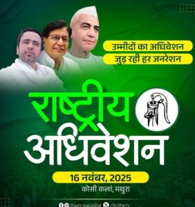 राष्ट्रीय सचिव अनुपम मिश्रा ने बताया—रालोद अधिवेशन में जयंत सिंह ने संगठन विस्तार और किसानों के मुद्दों पर दिया जोर