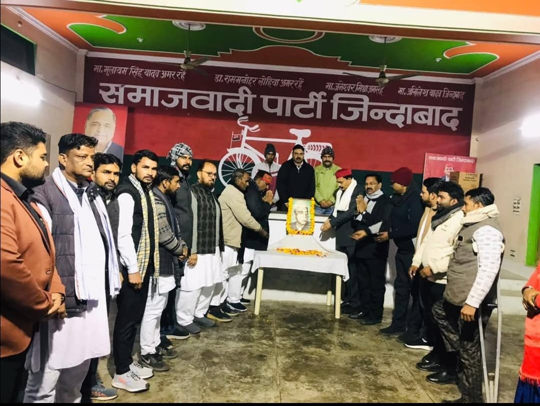 शाहजहांपुर। समाजवादी पार्टी के राष्ट्रीय अध्यक्ष अखिलेश यादव के निर्देश पर भारत के पूर्व प्रधानमंत्री श्रद्धेय चौधरी चरण सिंह की 123वीं जयंती मंगलवार को जनपद शाहजहांपुर के बिजलीपुरा स्थित समाजवादी पार्टी जिला कार्यालय पर ‘किसान दिवस’ के रूप में मनाई गई। इस अवसर पर पार्टी नेताओं, पदाधिकारियों एवं कार्यकर्ताओं ने चौधरी चरण सिंह के चित्र पर माल्यार्पण एवं पुष्प अर्पित कर उन्हें श्रद्धांजलि दी। कार्यक्रम के अंतर्गत एक विचार गोष्ठी का आयोजन सपा जिलाध्यक्ष एवं पूर्व चेयरमैन तनवीर खान की अध्यक्षता में किया गया, जिसमें चौधरी चरण सिंह के जीवन, संघर्ष और किसान हितैषी नीतियों पर विस्तार से चर्चा की गई।