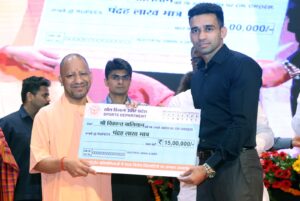 इस अवसर पर विभिन्न राष्ट्रीय और अंतरराष्ट्रीय प्रतियोगिताओं में पदक जीतने वाले 14 खिलाड़ियों को कुल 1.64 करोड़ रुपये की पुरस्कार राशि प्रदान की गई। इनमें विनय (पैरा पावरलिफ्टिंग, गोरखपुर) को 40 लाख रुपये, विक्रांत बालियान (वुशु, मेरठ), सागर दांगी (शूटिंग, बागपत), दीपक कुमार (पर्वतारोहण, गाजियाबाद) और लेफ्टिनेंट कर्नल भानु पाठक (पर्वतारोहण, गोरखपुर) को 15-15 लाख रुपये प्रदान किए गए।