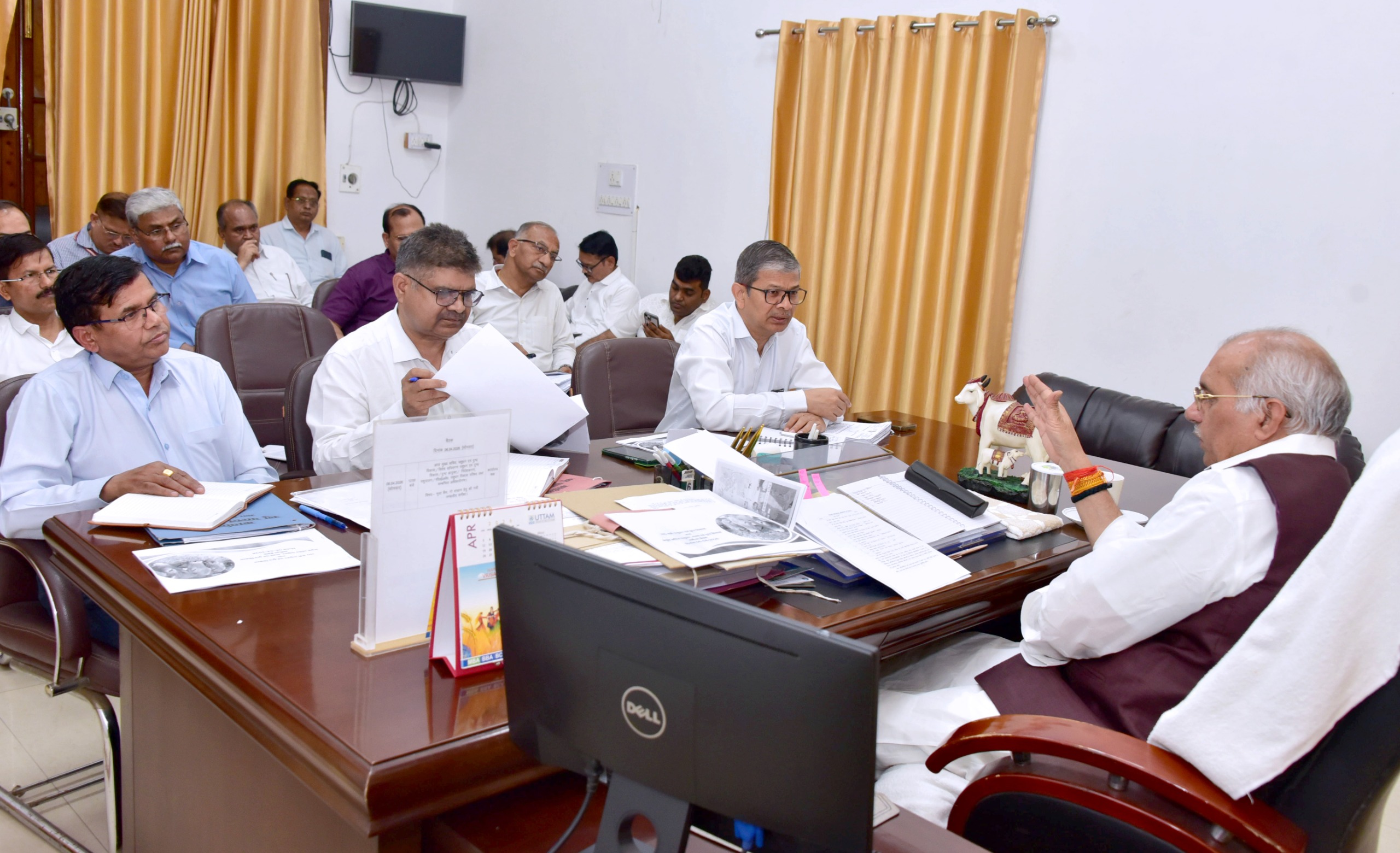विधान भवन स्थित कार्यालय में आयोजित बैठक के दौरान मंत्री ने सभी गौशालाओं में गोबर के समुचित उपयोग पर बल देते हुए गर्मी के मद्देनजर त्रिपाल, हरे चारे, पानी और भूसे की पर्याप्त व्यवस्था सुनिश्चित करने के निर्देश दिए। उन्होंने कहा कि प्रत्येक गौशाला में निःशुल्क बोरिंग कराई जाए, ताकि पानी की कमी न हो।