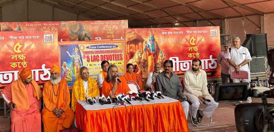 कोलकाता,6 दिसंबर : पश्चिम बंगाल की राजधानी कोलकाता में रविवार को ‘हिंदुओं के आध्यात्मिक जागरण’ के लिए भगवद् गीता का पाठ आयोजित किया गया है जिसमें करीब पांच लाख श्रद्धालु शामिल होंगे। आयोजकों ने शनिवार को यह जानकारी दी।