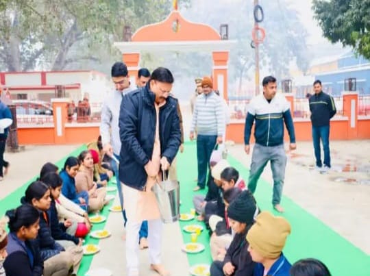 मकर संक्रांति पर पुलिस लाइन में खिचड़ी प्रसाद का वितरण