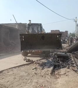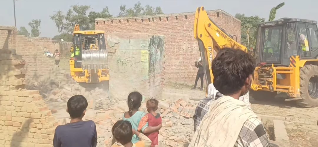 सुबह से ही गांव में भारी पुलिस बल की तैनाती कर दी गई थी ताकि किसी भी तरह की अप्रिय स्थिति न उत्पन्न हो। दोपहर करीब 12 बजे प्रशासन की टीम ने बुलडोज़र अभियान शुरू किया। देखते ही देखते अवैध रूप से बने मकान और निर्माण ध्वस्त कर दिए गए।