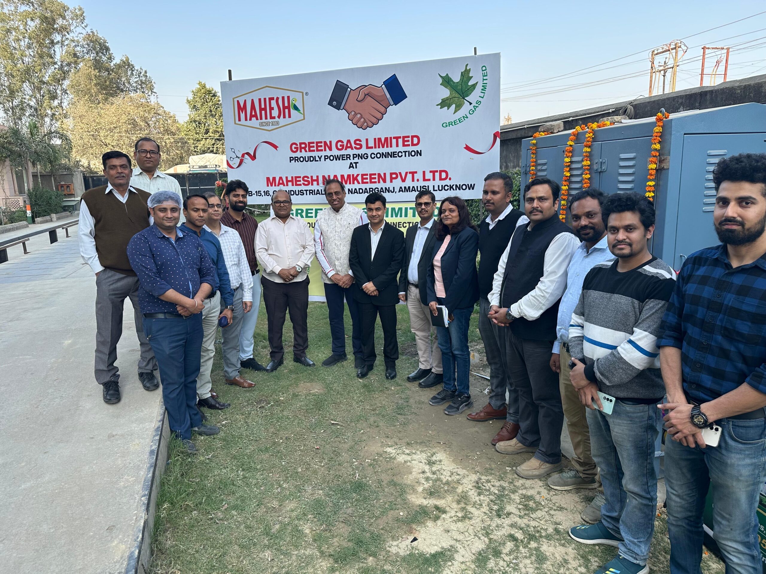 लखनऊ। महेश नमकीन प्रा. लि., अमौसी इंडस्ट्रियल एरिया, नादरगंज में ग्रीन गैस लिमिटेड के कमर्शियल गैस कनेक्शन का विधिवत शुभारंभ किया गया। कार्यक्रम में दोनों कंपनियों के मैनेजिंग डायरेक्टर्स की गरिमामयी उपस्थिति में फीता काटकर उद्घाटन संपन्न हुआ।