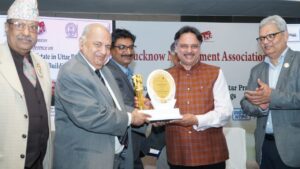 लखनऊ, सरोजनीनगर विधायक डॉ. राजेश्वर सिंह ने शनिवार को होटल ग्रैंड जेबीआर, गोमती नगर में लखनऊ मैनेजमेंट एसोसिएशन (LMA) द्वारा आयोजित “ट्रांसफॉर्मिंग रियल एस्टेट इन उत्तर प्रदेश थ्रू ग्रीन बिल्डिंग्स” विषयक सम्मेलन में सहभागिता करते हुए ग्रीन बिल्डिंग्स को तकनीकी अवधारणा से आगे बढ़ाकर जन-आंदोलन का स्वरूप देने का आह्वान किया।