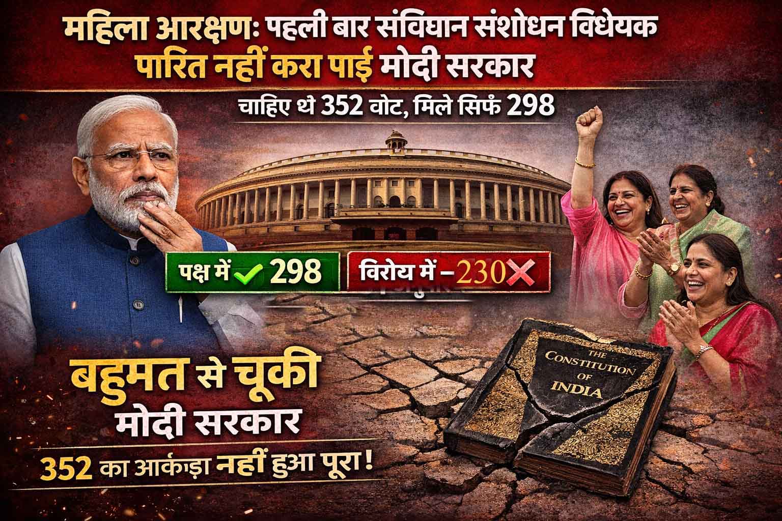 नई दिल्ली। लोकसभा में महिला आरक्षण और परिसीमन से जुड़े संविधान संशोधन विधेयक पर शुक्रवार (17 अप्रैल) को हुई लंबी बहस के बाद मतदान तो हुआ, लेकिन सरकार आवश्यक दो-तिहाई बहुमत हासिल करने में विफल रही। इसके साथ ही यह विधेयक पारित नहीं हो सका और पिछले 12 वर्षों में पहली बार नरेंद्र मोदी सरकार का कोई संविधान संशोधन विधेयक सदन में पास नहीं हो पाया।