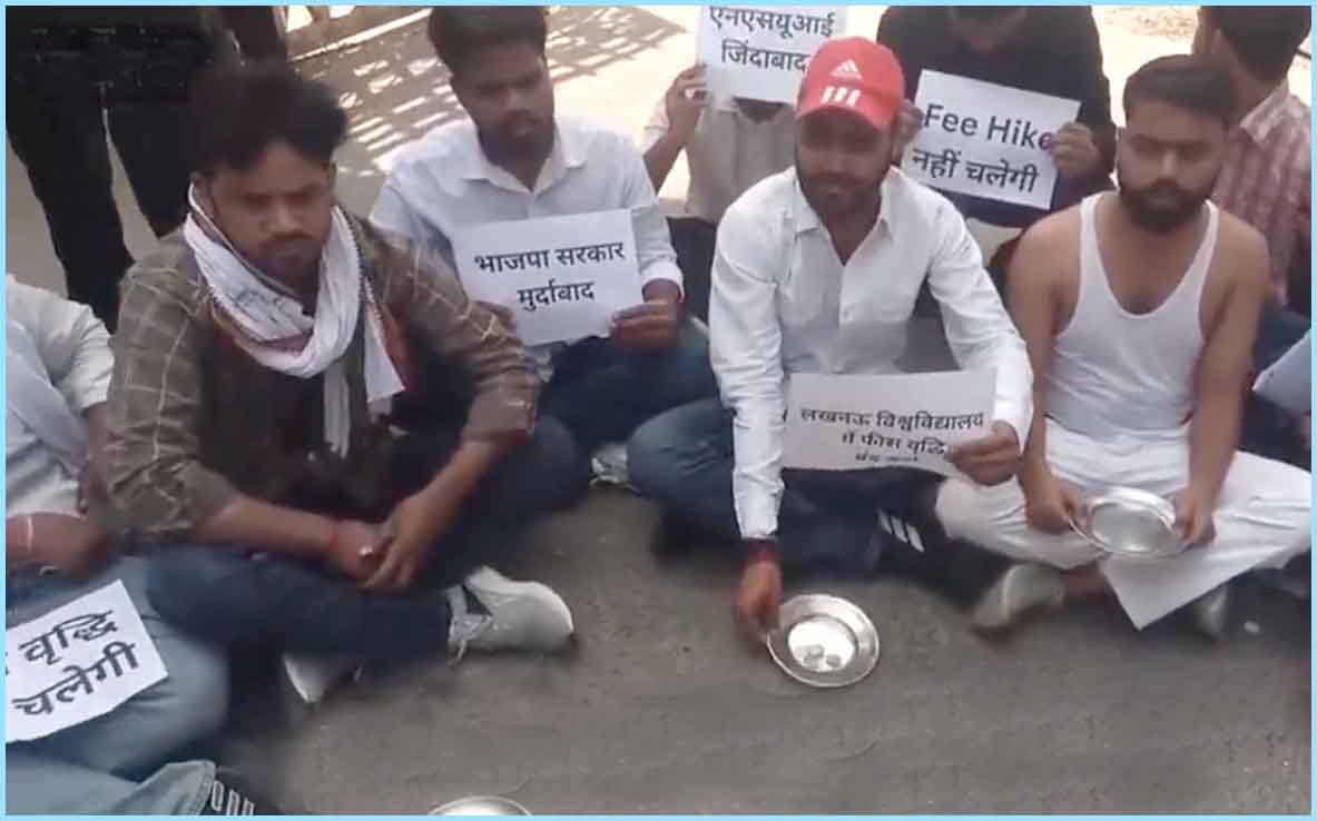 एलयू में फीस वृद्धि के खिलाफ एनएसयूआई का प्रदर्शन, कटोरा लेकर मांगी भीख